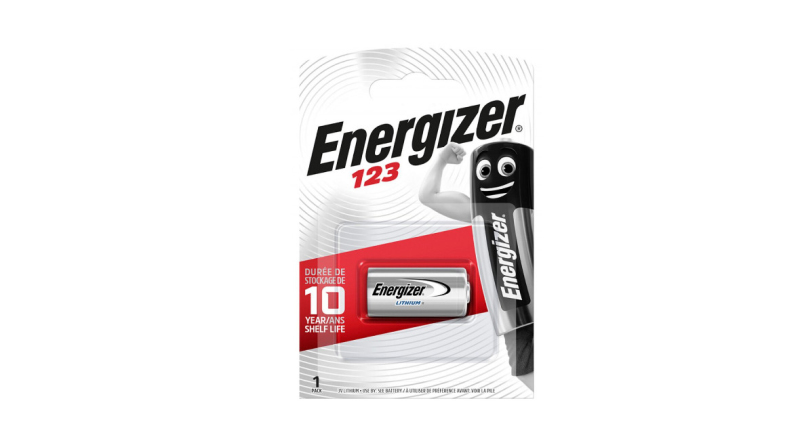 Jeden kus jednorázové lithiové baterie Energizer CR123 (CR123A, DL123, DL123A, CR17345, EL123AP, fotobaterie). Disponuje jednou z nejvyšších kapacit na trhu, má extrémní trvanlivost a odolnost při nízkých teplotách.
