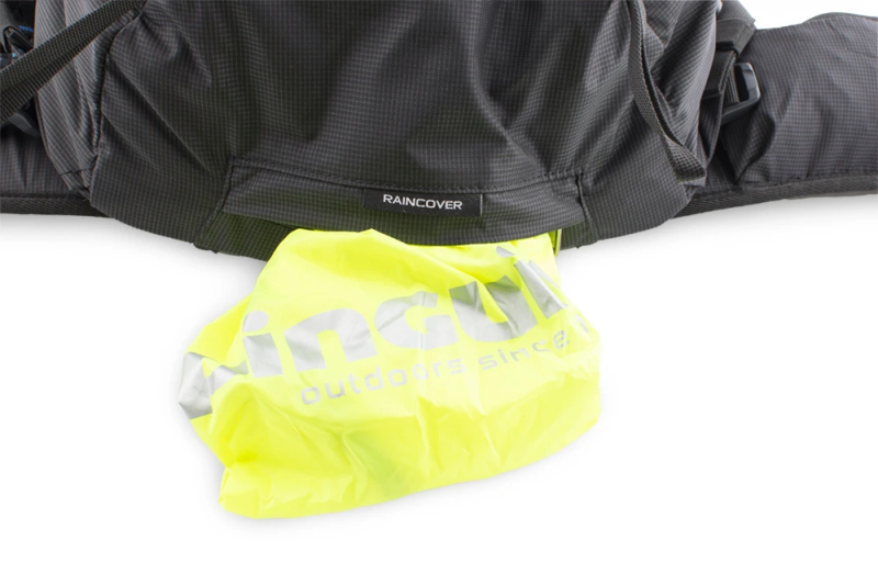 Výrazná pláštěnka v samostatné zipové kapse na dně batohu