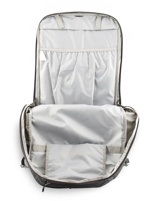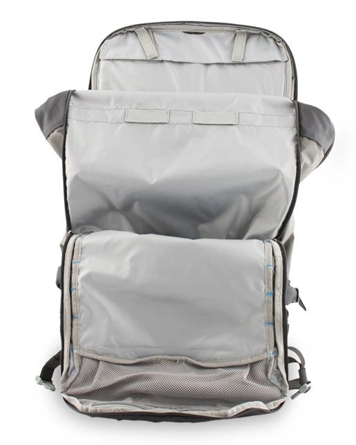 Přední pro samostatné uložení a snadnou dostupnost lavinové výbavy a hlavní komora pro přepravu oblečení, potravy a další nezbytné výbavy pro cesty volným terénem. V přední komoře se nachází zipová kapsa na cennosti včetně poutka na klíče. Uvnitř hlavní komory se nachází přepážka oddělující vodní vak od dalšího převáženého vybavení.