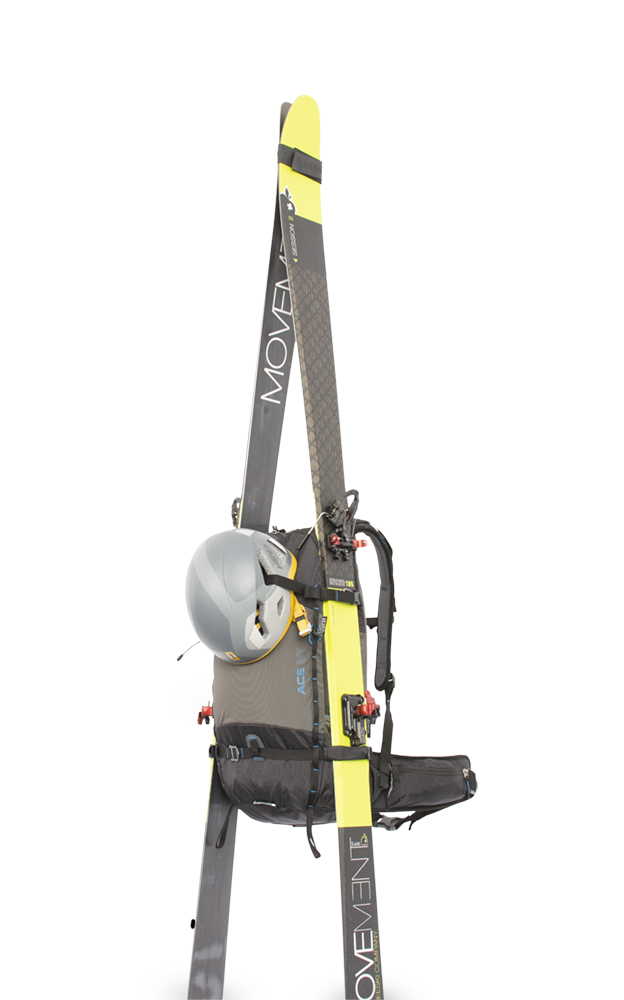 Nízký profil batohu podporující maximální svobodu pohybu při lyžování a snowboardingu.