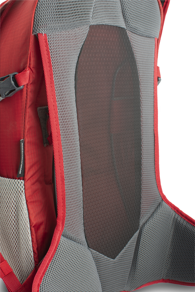 Velmi pohodlný, odvětraný zádový systém AVBS kombinující pevnou síťovinu s 3D mesh panely, umožňující maximální odvětrání zad při zachování optimálního rozložení nákladu. Předpětí zádového systému drátěným rámem