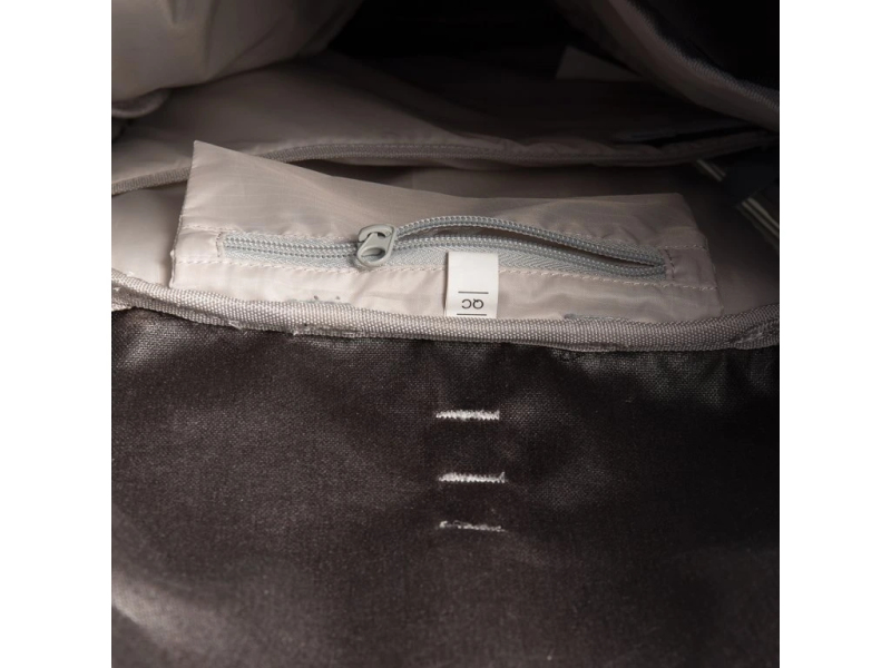 Uvnitř je oddělená kapsa pro tablet nebo notebook, do které je vstup shora a také zipem z boku. Na druhé straně je z boku výstup pro sluchátka.