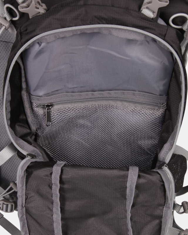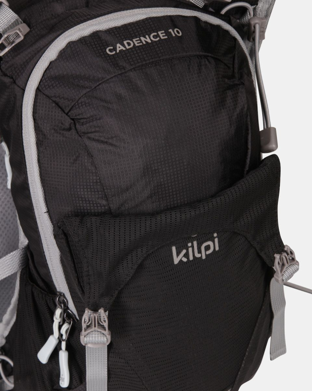Kilpi CADENCE 10-U je kompatibilní s vodním vakem, který se umísťuje do přihrádky na zádech a zafixuje pomocí suchého zipu. Hadička se upevňuje pomocí magnetického patentu na předním rameně a proto se s ní velmi lehce manipuluje. Přední zipová přihrádka obsahuje přehledný organizér, síťovanou kapsu na helmu nebo bundu v přední části a zipovou kapsu na drobnosti. Běžecké hole je možno uchytit pomocí gumiček. Další dvě kapsy jsou umístěny na bocích a pojmou láhev o objemu půl litru.