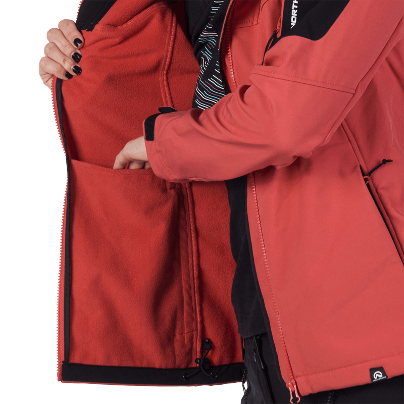 Bunda je vyrobena z třívrstvého softshellu elastického ve 4 směrech a disponuje dvěma předními kapsami na zip a jednou kapsou na rukávu. Bunda má fixní 3D kapuci, nastavitelný dolní okraj i rukávy.