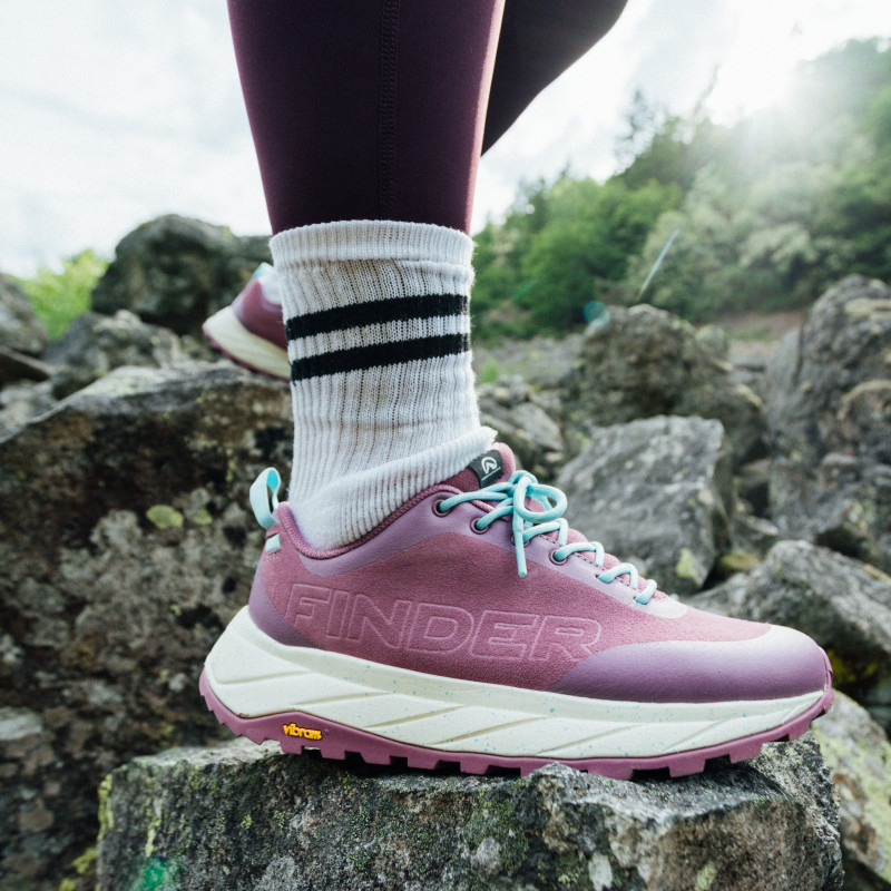 Boty pro lehkou turistiku inspirované běžeckými botami s kolébkovou strukturou podrážky
