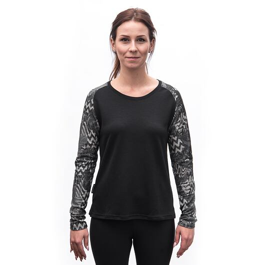 Dámské triko SENSOR MERINO BLEND IMPRESS dl.rukáv černá/zebra