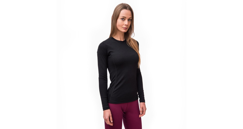 Tričko s dlouhým rukávem vyrobené z úpletu unikátní konstrukce kombinující polyester na vnitřní straně a vysoce kvalitní Merino vlnu z Nového Zélandu.