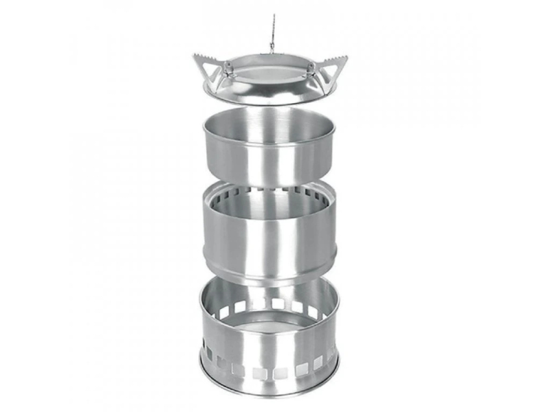 Kompaktní a výkonný vařič na všechny druhy pevných paliv, včetně dřevěného uhlí, dřeva, tuhého lihu, atd.