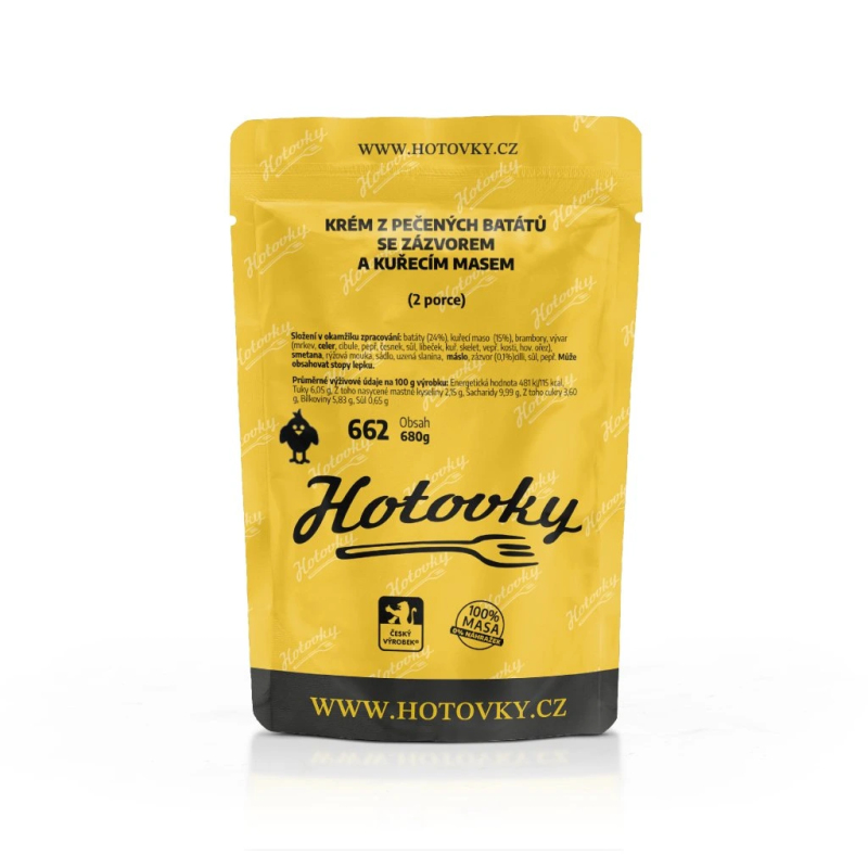 Zobrazit víceSložení v okamžiku zpracování: batáty (24%), kuřecí maso (15%), brambory, vývar