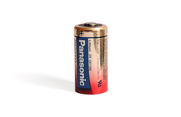 Jeden kus primární lithiové baterie Panasonic CR123A (CR123), u nás známý pod názvem foťáková baterie.