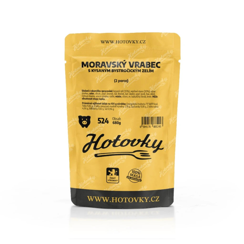 Složení v okamžiku zpracování: bílé zelí (35%), vepřové maso (30%), vývar (mrkev, celer, cibule, pepř, česnek, sůl, libeček, kuř. skelet, vepř. kosti, hov. ořez), rýžová mouka, uzená slanina, sádlo, máslo, citron, m. kukuřičný škrob, kmín. Může obsahovat stopy lepku.