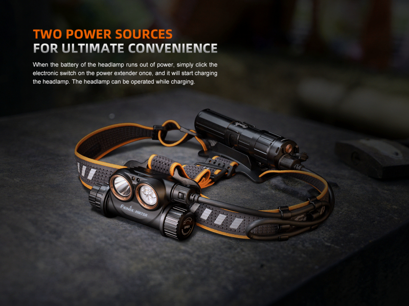 - Používá Li-ion akumulátory 18650 (uvnitř těla čelovky) s kapacitou 3400 mAh a 21700 (v bateriovém pouzdře na zátylku) s kapacitou 5000 mAh (oba součást balení).