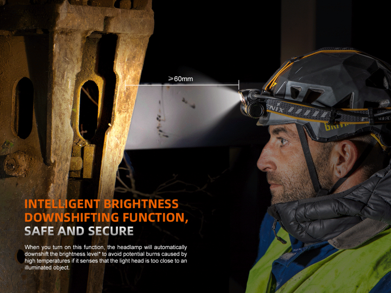 Inteligentní ochrana proti přehřátí - Při dlouhodobém používání čelovky na vysoké režimy výkonu se akumuluje velké množství tepla. Když čelovka dosáhne teploty 60 °C nebo vyšší, automaticky sníží výkon o několik lumenů, aby se teplota snížila. Když teplota klesne pod 60 °C, tak se výkon opět postupně zvýší.