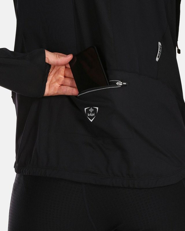 - Prodloužené rukávy jsou ukončeny manžetou s otvorem na palec a elastickým lemem. Zadní díl bundy je rovněž prodloužen, s protiskluzovým silikonovým páskem, aby se vám bunda při aktivitě, v chladném počasí nevyhrnovala.
