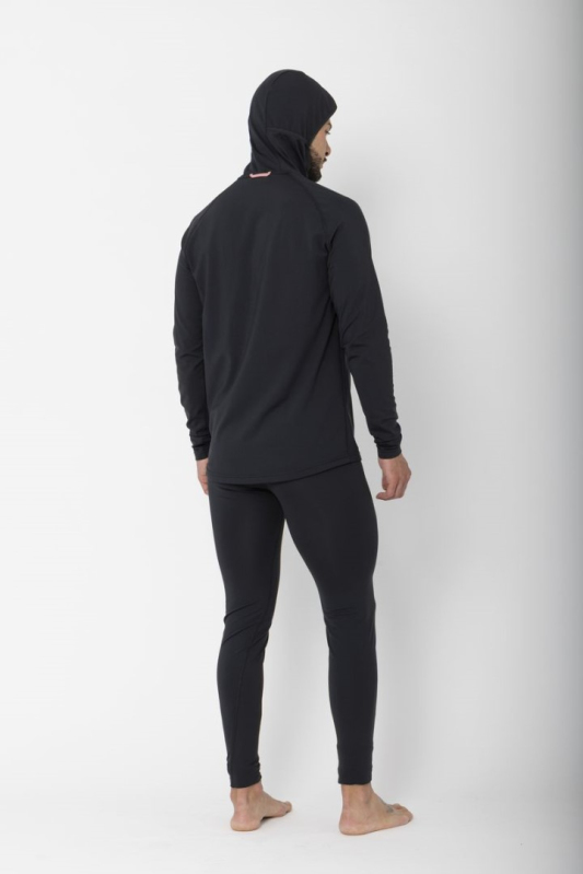 Je vyrobena ze 78 % recyklovaného polyesteru a 22 % spandexu, s gramáží 240 g/m², a je vybavena pohodlným a pružným powerfleecem, který umožňuje volnost pohybu. Kapuce sahá až k dolní polovině obličeje, aby chránila před větrem a chladem.