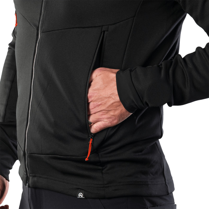 Je vyrobena z měkkého, pružného úpletu s antipilingovou úpravou, takže i po mnoha praních a nošeních nevypadá žmolkující se. Vnitřní mřížkovaná struktura zlepšuje odvod potu – pot se rychle rozprostírá po povrchu a bunda rychleji schne, takže se po výstupu necítíte mokrí a promrzlí. Přidání elastanu vám poskytuje volnost pohybu při chůzi, lezení nebo při každodenním nošení.