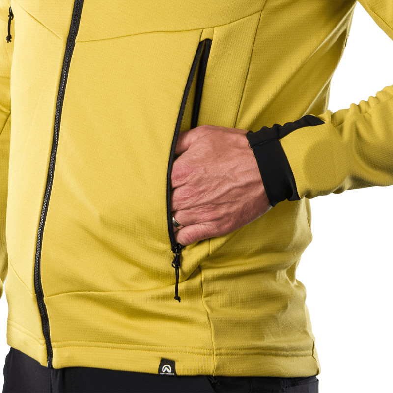Je vyrobena z měkkého, pružného úpletu s antipilingovou úpravou, takže i po mnoha praních a nošeních nevypadá žmolkující se. Vnitřní mřížkovaná struktura zlepšuje odvod potu – pot se rychle rozprostírá po povrchu a bunda rychleji schne, takže se po výstupu necítíte mokrí a promrzlí. Přidání elastanu vám poskytuje volnost pohybu při chůzi, lezení nebo při každodenním nošení.