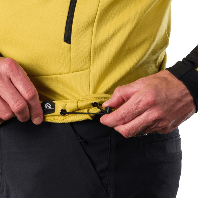 Častý problém? Zima na začátku, horko při lezení, zase zima během přestávky. JACINTO tento cyklus zmírňuje – materiál neustále odvádí vlhkost, límec chrání krk před větrem a nastavitelný spodní lem lze utáhnout, když se na louce nebo na vyhlídce ochladí. Elastické manžety drží rukávy na místě, takže vám zápěstí neprochladnou.