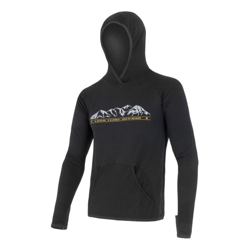 Pánská mikina SENSOR MERINO UPPER MOUNTAINS klokanka černá