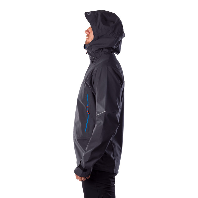 - Třívrstvý softshell s gramáží 20 000 mm / 20 000 g/m² odolává silnému větru a přeháňkám