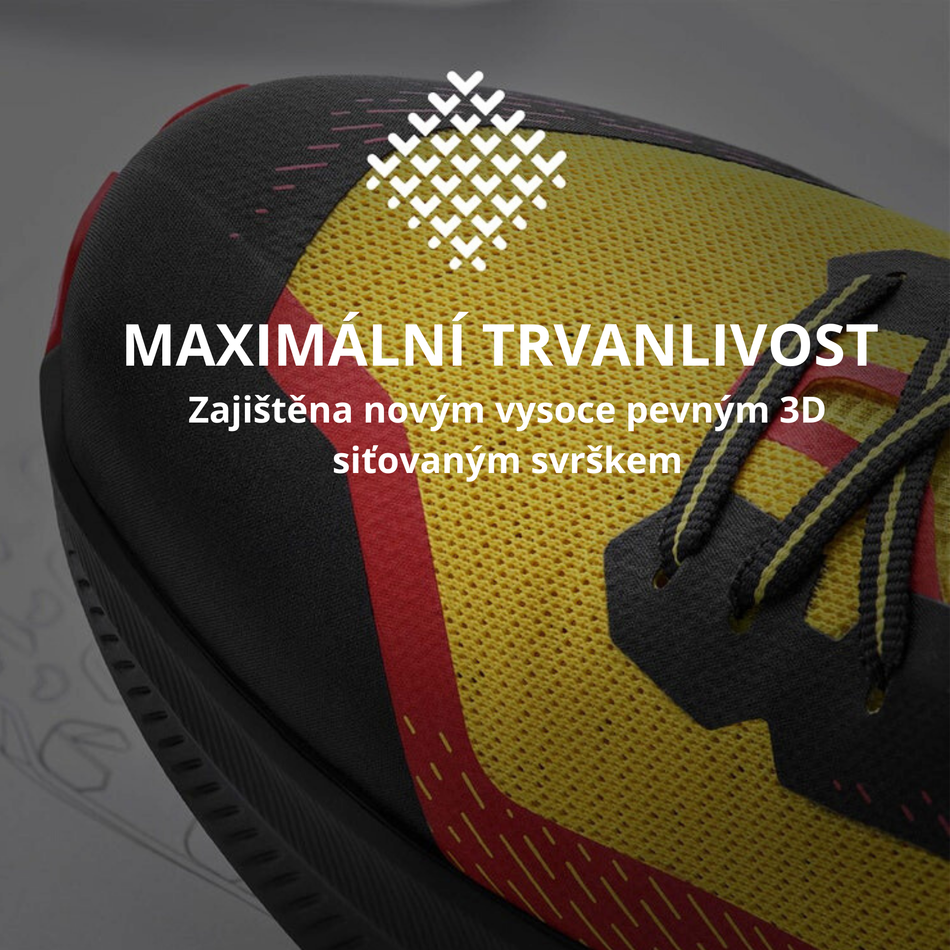 Robustní mezipodešev a stélka, obě vyrobené z našeho exkluzivního materiálu XFlow™, poskytují vynikající odpružení a explozivní návrat energie kilometr za kilometrem. Podešev FriXion® Red z dvojité směsi s přilnavými 4mm výstupky zvyšuje odolnost v oblastech s vysokým opotřebením na patě a zároveň umožňuje maximální trakci ve střední a přední části chodidla, abyste se mohli s jistotou pohybovat v technických úsecích.