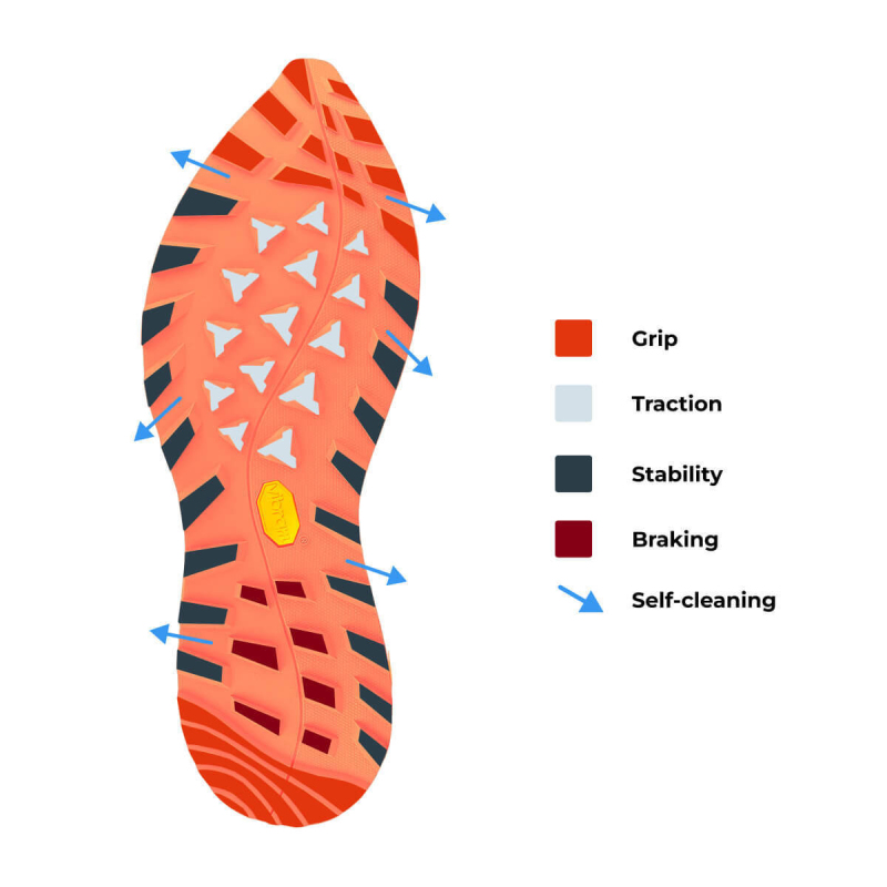 Podrážka VIBRAM® Megagrip BAYU je vrcholem tohoto modelu, známá pro svou vynikající přilnavost na mokrém i suchém povrchu. Tato nejmodernější technologie zaručuje bezpečnost a stabilitu bez ohledu na terén a nabízí plynulou chůzi a optimální tlumení nárazů.