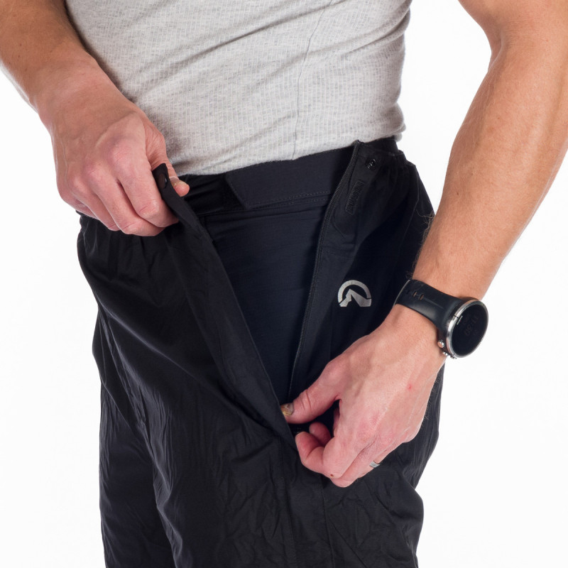 Velkou výhodou je jejich nízká hmotnost pouhých 190 g a výborná sbalitelnost – kalhoty jednoduše zabalíš do malé taštičky a máš je vždy připravené v batohu. Elastický pas a nastavitelný spodní okraj nohavic umožňují lepší přizpůsobení postavě i obuvi, zatímco boční zipy ve spodní části usnadňují oblékání a svlékání i přes boty. Ochranná klopa navíc pomáhá zabránit pronikání větru a vlhkosti.