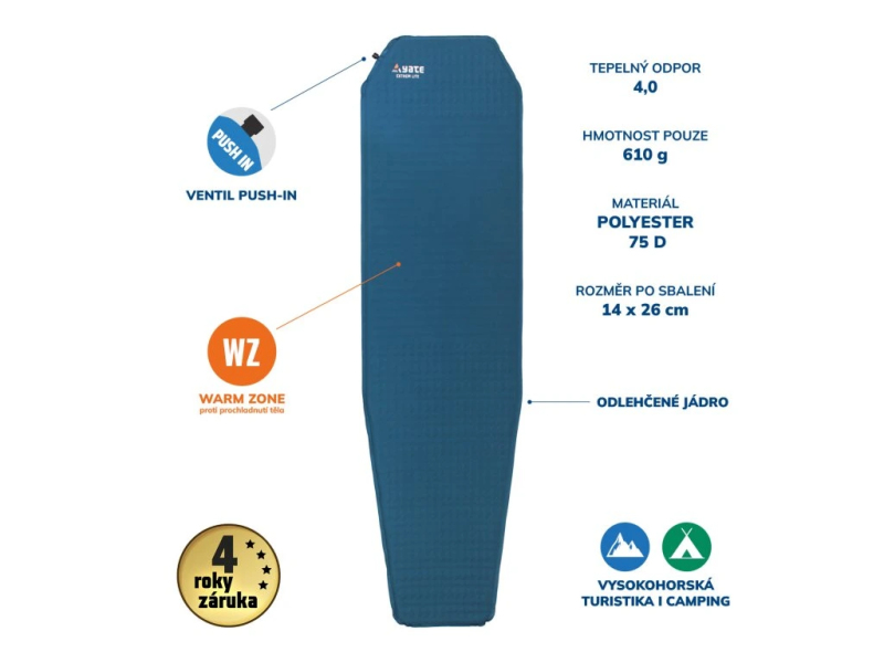 Samonafukovací karimatka YATE EXTREM LITE 2,5 modrá/šedá