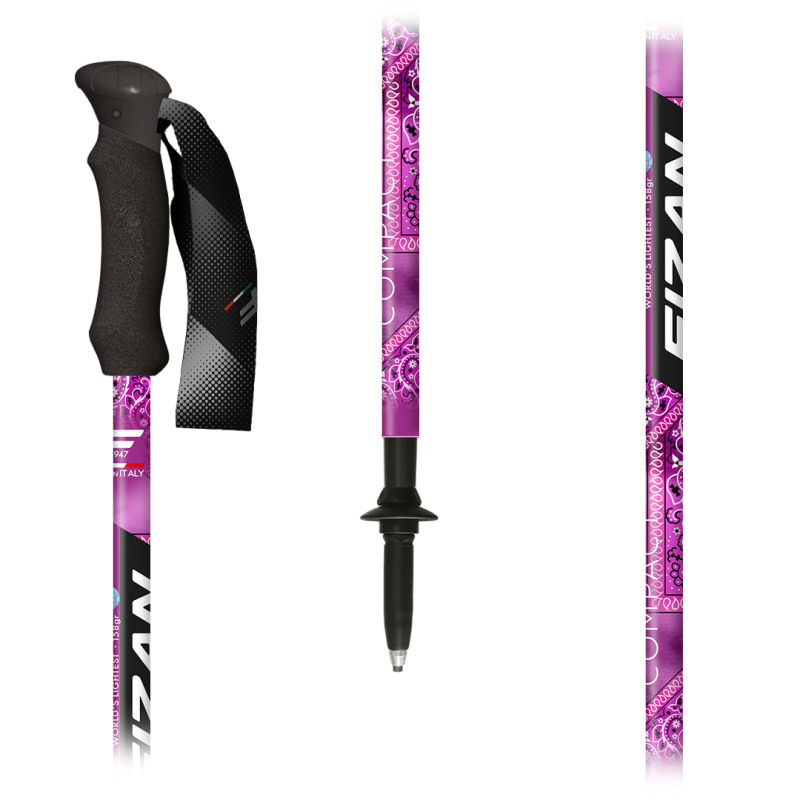 Trojdílná konstrukce z pevného hliníku je nastavitelná v rozmezí 59 až 132 cm a díky systému Flexy Lock se snadno a rychle přizpůsobí tvojí výšce i terénu. Ergonomická a měkká rukojeť z pěnového materiálu EVA padne do ruky jako ulitá, a když dojde na balení, vejdou se bez problémů i do menšího batohu. Hrot je z velmi odolného karbidu. Compact MS je varianta, která obsahuje i praktický nákrčník v designu hole.