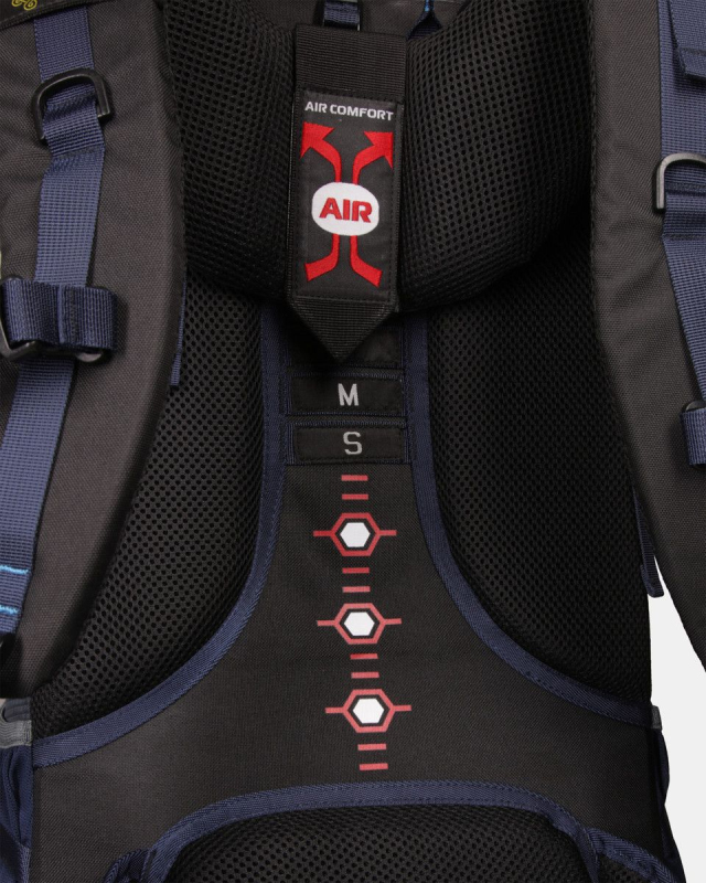 - Vyztužený nastavitelný zádový systém s měkkým 3D polstrováním udržuje těžiště blízko zad a perforovaná ventilační zóna umožňuje proudění vzduchu mezi zády a batohem.