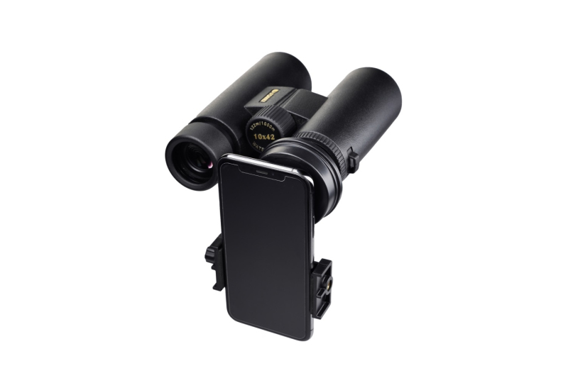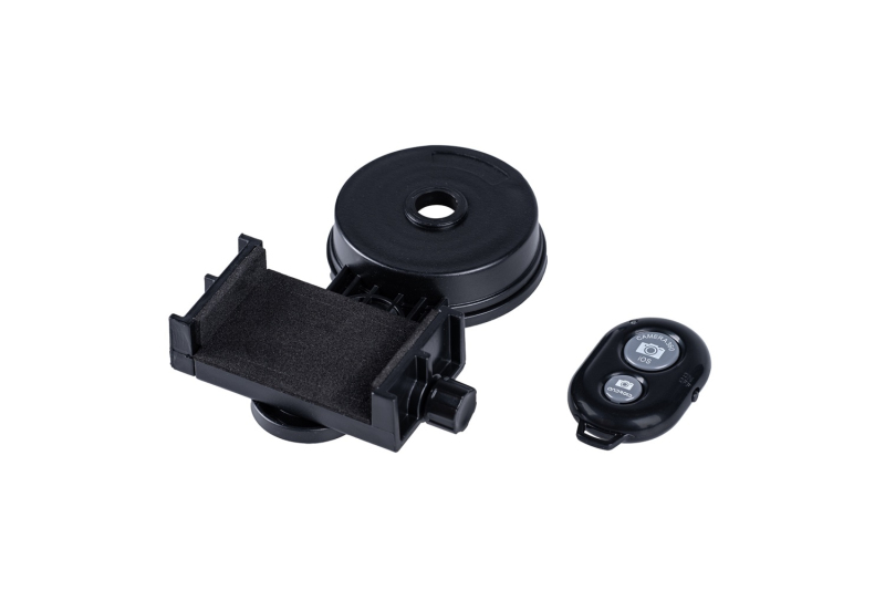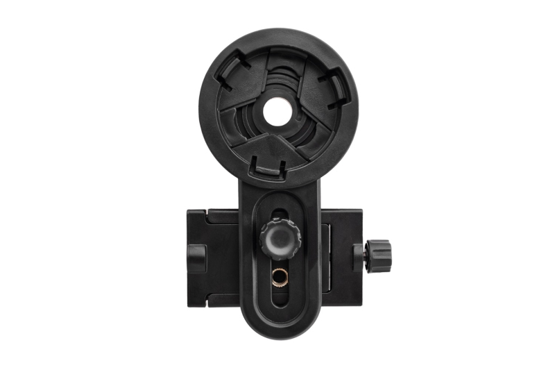 Adaptér pro uchycení mobilního telefonu slouží k pohodlnému snímání a záznamu obrazu přes okulár spektivu nebo dalekohledu.