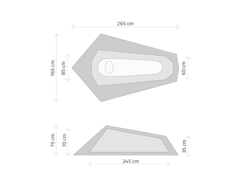 Ideální stan pro spaní ve volné přírodě ve vlhkých a větrných podmínkách. Lehký a malý po sbalení, snadný na postavení. Pevná konstrukce díky dvěma prutům 7,9 mm. Vhodný zejména pro trekking a cyklistiku. Stan je vhodný pro postavu do 190 cm.