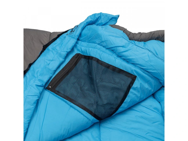 Zapínání: spacák je vybaven značkovým zipem YKK se speciálním plastovým chráničem, který zabraňuje vniknutí látky do jezdce a samovolnému rozepínání. U hlavy je zip ještě zajištěn klopou na suchý zip, která zamezuje samovolnému otevření zipu.